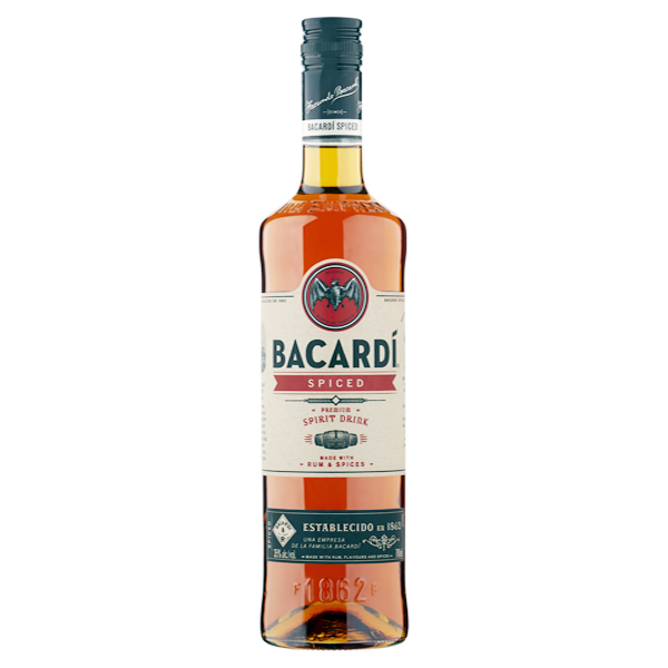 Bacardi Spiced Rum dibuat dengan rum tua dan belum tua, dengan sedikit asap dari kayu ek Amerika yang hangus, Bacardi Spiced dicampur dengan rasa dan rempah alami untuk rasa yang berani, namun lembut. Minuman rum berbumbu ini memiliki nada ringan dan dalam, membuatnya sempurna untuk dicampur.